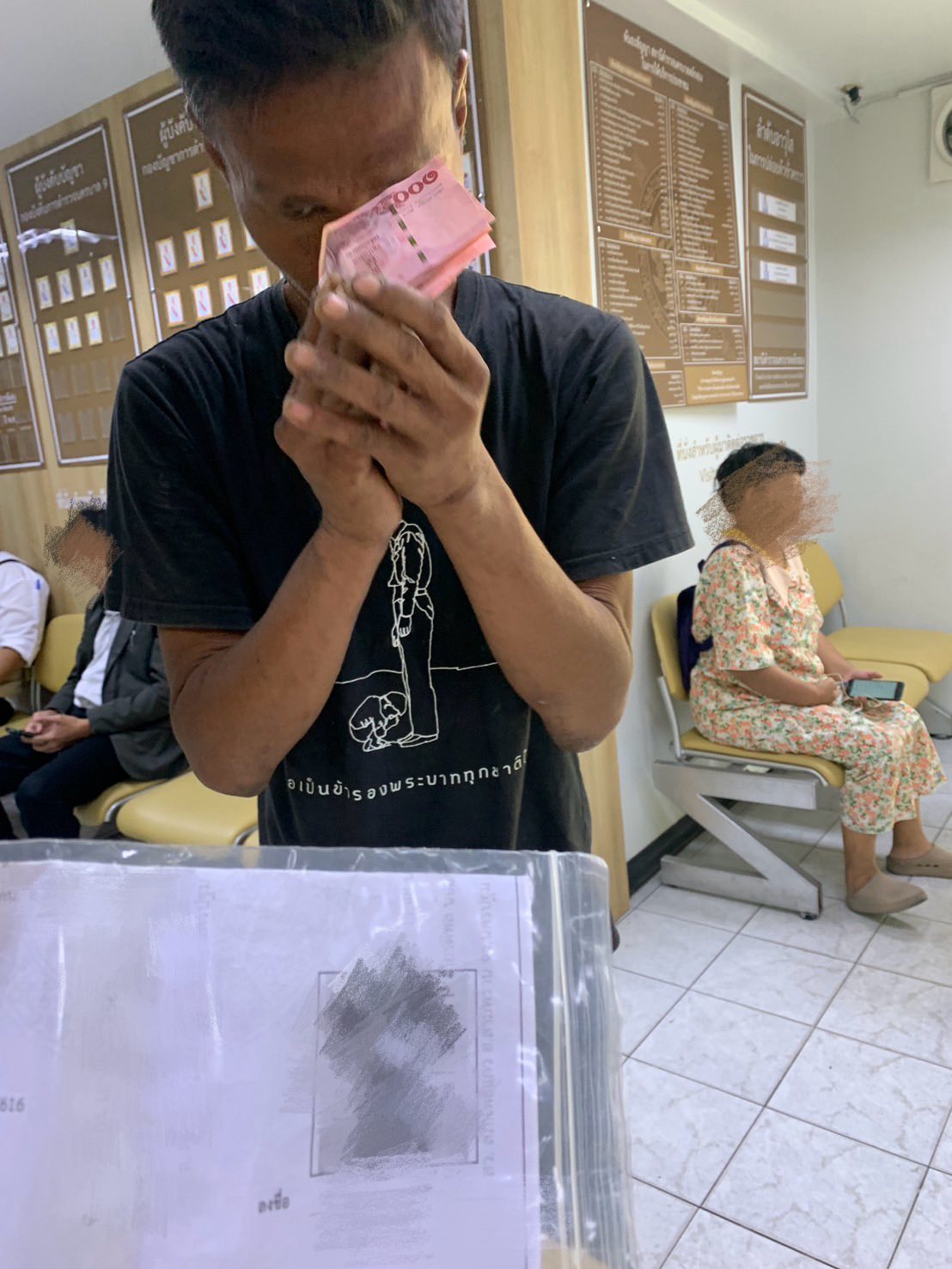 เงินติดตัวที่มี เป็นเงิน 40 บาทที่ได้รับความช่วยเหลือจากเจ้าหน้าที่อีกแห่งหนึ่ง ซึ่งเขาใช้ซื้ออาหารไปแล้ว