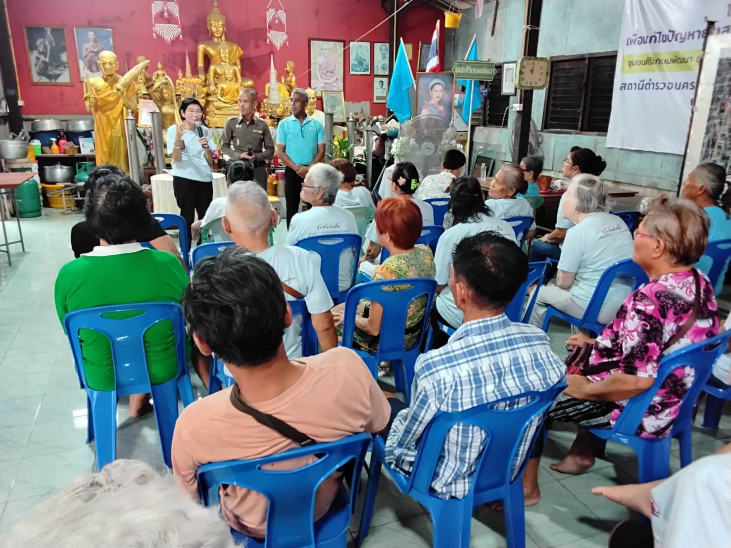 นายสมชาย ไชยราช พร้อมคณะกรรมการชุมชน ประธานคุ้ม คณะกรรมการคุ้ม นายภูเมธ กมลศุภกิตติ์ ประธานเครือข่ายกองทุนแม่ของแผ่นดิน นำผู้เข้าร่วมโครงการชุมยั่งยืนฯ ชุมชนศิริเกษมพัฒนา และชุมชนอัสสัมชัญพัฒนา ร่วมกิจกรรมชุมชน มี กิจกรรมทางศาสนาสวดมนต์ไหว้พระ ออกกำลังกายกับผู้สูงอายุ ฟังการบรรยายเรื่องโทษของยาเสพติด การให้ความรู้เรื่องเรื่องการป้องกันยาเสพติดในชุมชน การเฝ้าระวังแจ้งข่าวอาชญากรรม และการพบคุณหมอนักจิตฯ ร่วมรับประธานอาหาร และกิจกรรมนันทนาการ โดยมีเป้าหมายเพื่อการสร้าง การมีส่วนร่วมของคนในชุมชน การป้องกันและแก้ไขปัญหายาเสพติดอย่างยั่งยืน การสร้างภูมิคุ้มกันทางสังคม การฟื้นฟูผู้ที่เคยเกี่ยวข้องให้กลับมาเป็นคนดีของสังคม
